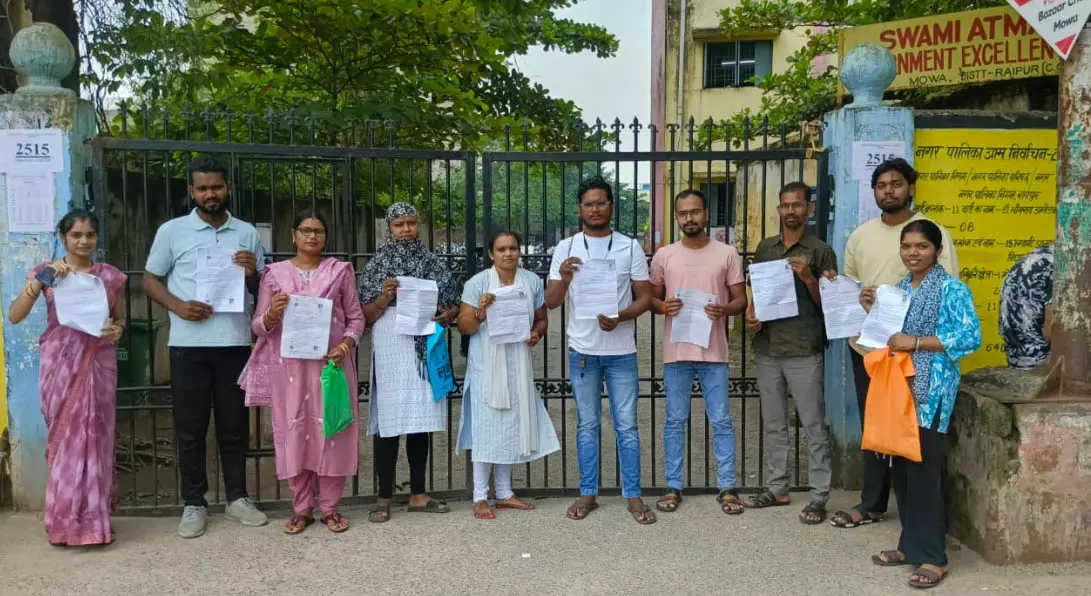 रायपुर। व्यापमं ने आज रविवार को शासकीय अस्पतालों के लिए वार्ड ब्वाय और आया पदों की भर्ती के लिए प्रदेश भर में लिखित परीक्षा आयोजित की। इस दौरान अव्यवस्था के साथ परीक्षार्थियों को धमकाने की खबरें आई हैं। राजधानी मोवा के स्कूल में निर्धारित समय से पहले ही प्रवेश बंद कर दिए जाने से दर्जनों अभ्यर्थियों को परीक्षा देने का अवसर नहीं मिला। इनका कहना था कि सभी 10.20 से 10.26 तक स्कूल पहुंच गए थे लेकिन गेट बंद कर दिया गया था। इसके बाद गेट पर भीड़ बढ़ती देख स्कूल के भीतर से एक व्यक्ति आया और कहा कि बहुत बड़ी परीक्षा है, यहां शोर न मचाएं सभी चले जाएं।। न जाने पर भीतर पुलिस होने और लाठीचार्ज की धमकी दी। जानकारी अनुसार इस केंद्र में करीब 200 लोग परीक्षा देने से वंचित रह गए।