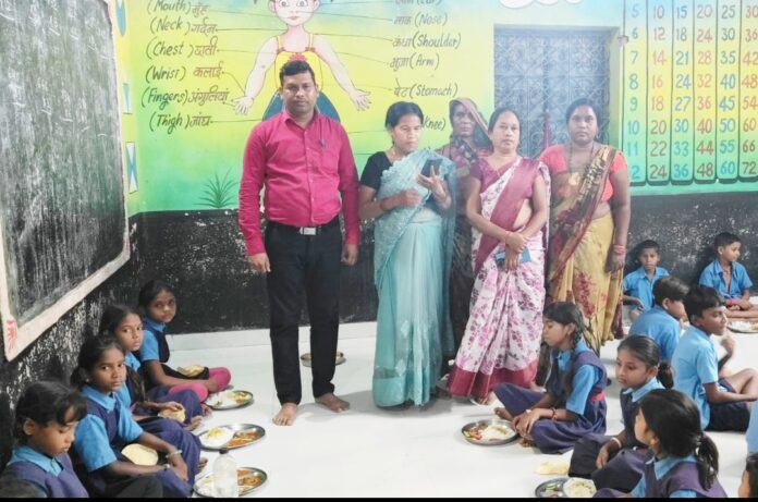 सरायपाली। शासन के निर्देशानुसार एवं विकासखंड शिक्षा अधिकारी टी सी पटेल एवं बीआरसीसी देवानंद नायक के मार्गदर्शन में शासकीय प्राथमिक शाला बिजातीपाली में नेवता भोज का दिया गया। गांव के आंगनवाड़ी कार्यकर्ता पुतली जगदल्ला एवं उनके परिवार के द्वारा आंवला तल के उपलक्ष्य में बिजातीपाली स्कूल के बच्चों नेवता भोज दिया गया। दिनांक 4 नवंबर को नेवता भोज में दाल ,चावल, टमाटर की सब्जी, फूटू (मशरूम)सलाद और पापड़ दिया गया। बच्चों ने स्वादिष्ट भोजन का आनंद उठाया,बच्चे बहुत प्रसन्न हो गए। विद्यालय के प्रधान पाठक प्रेमशीला पटेल ने कहा ,की नेवता भोज का यह कार्यक्रम बहुत ही अच्छा है, इस प्रकार के कार्यक्रम से शाला और समुदाय में आपसी सहयोग और भावनात्मक विकास ,में वृद्धि के साथ आपसी संबंधों को मजबूती प्रदान करती है। शाला परिवार ने नेवता भोज के लिए आंगनवाड़ी कार्यकर्ता पुतली बाई और उनके परिवार को आभार व्यक्त किया। इस अवसर पर शाला के शिक्षक निर्मल कुमार मेहेर, रसोईया सुहावन बाई, कमला बाई, संजुला चौहान, नीला मानिकपुरी, सुशीला चौहान की उपस्थिति रही।