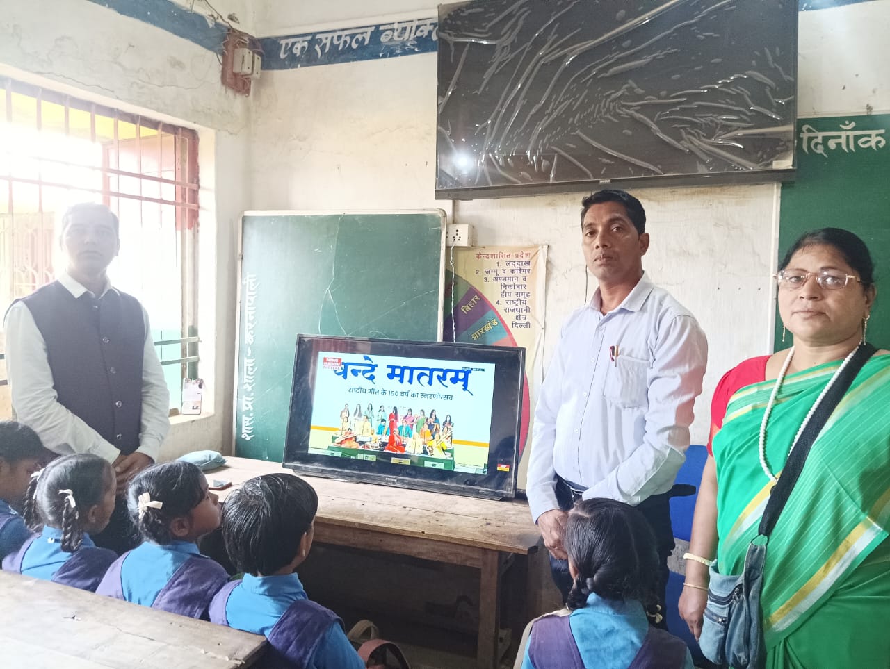 वहीं उपस्थित विद्यालय के शिक्षिका निर्मला नायक ने भी इस राष्ट्रीय गीत का सम्मान करते हुए इस गीत का अर्थ स्पष्ट किया।