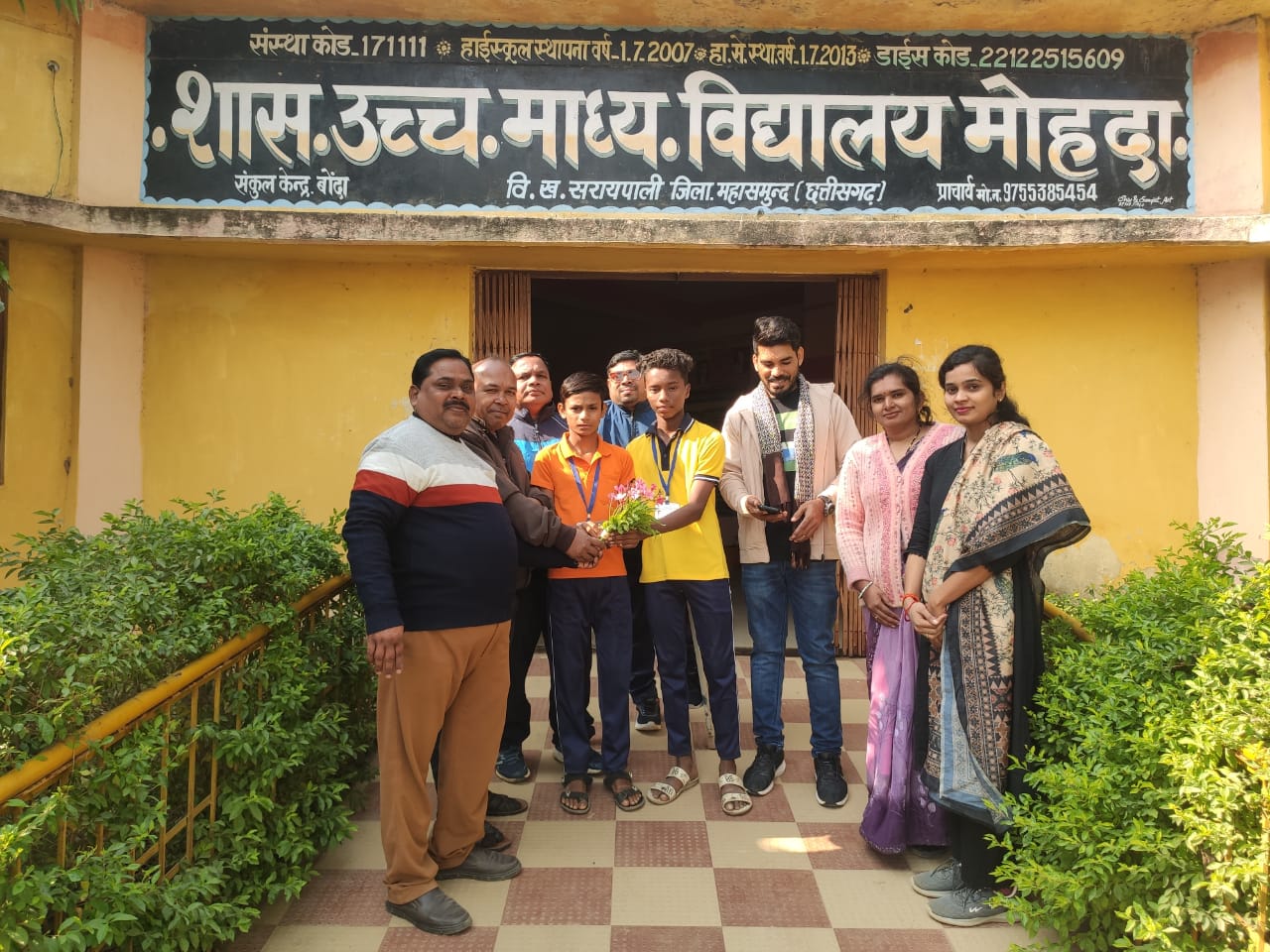 सरायपाली। शासकीय हायर सेकेंडरी स्कूल मोहदा के 2 छात्रों का राष्ट्रीय स्तर खो-खो खेल में चयन हुआ है।  हाल ही में इस विद्यालय से अन्य 4 छात्र-छात्राओं का भी राज्य व राष्ट्र स्तर पर खो-खो खेल में चयन हुआ था। इस बार कक्षा 9वीं से छात्र महेश कैवर्त तथा कक्षा 10वीं से योगेश बाघ का चयन राष्ट्र स्तर खेल में हुआ है। इसमें एक छात्र खो-खो खेलने के लिए अयोध्या एवं एक छात्र राजस्थान खेलने जाएंगे। इनकी इस उपलब्धि को हासिल करने में संस्था के व्यायाम शिक्षक हेमसागार कैवर्त का विशेष योगदान रहा है। दोनों बच्चों की इस उपलब्धि के लिए शाला विकास समिति के अध्यक्ष गाड़ाराय साहू एवं सदस्य गणों ने हर्ष व्यक्त करते हुए उनके उज्जवल भविष्य की कामना की है। साथ ही विद्यालय के प्राचार्य करूणा साहू व शिक्षक गण एम आर पटेल, बी एल यादव, एच आर चौधरी, वी पी गुप्ता, राजकुमारी चौधरी, अनिता पटेल, रीना यादव, वेणुधर टिकुलिया, गिरजा शंकर चौहान व विद्यालय परिवार द्वारा पुष्प गुच्छ भेंट कर उन्हें शुभकामनाएं दी गई।