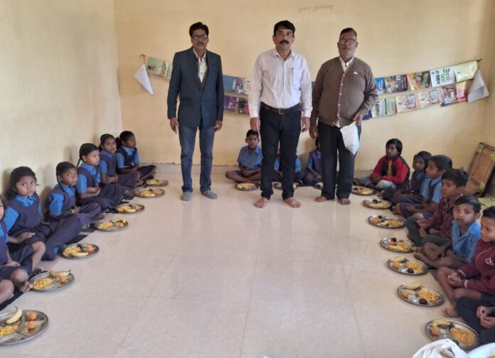 सरायपाली। विकासखंड शिक्षा अधिकारी टी सी पटेल,सहायक विकासखंड शिक्षा अधिकारी डी एन दीवान एवं विकासखंड स्त्रोत समन्वयक समग्र शिक्षा देवानंद नायक के मार्गदर्शन में प्रधानमंत्री शक्ति पोषण योजना अंतर्गत स्वादिष्ट एवं पौष्टिक भोजन देने के लिए नेवता भोज का आयोजन किया जा रहा है। इस कार्यक्रम के अंतर्गत शासकीय प्राथमिक शाला केन्दुमुड़ी, विकासखंड सरायपाली,जिला महासमुंद में विकासखंड शिक्षा अधिकारी सरायपाली टी.सी. पटेल के द्वारा अपने सुपुत्र के शादी के शुभ अवसर पर नेवता भोज का आयोजन किया गया। नेवता भोज में