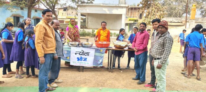 सरायपाली/सागरपाली। शासकीय प्राथमिक एवं उच्च प्राथमिक शाला सागरपाली में आज विकासखण्ड शिक्षा अधिकारी बसना बद्रीविशाल जोल्हे एवं विकासखण्ड स्रोत समन्वयक अनिल सिंह साव के द्वारा संयुक्त रूप से न्योता भोज का आयोजन किया गया। इस अवसर पर विशेष रूप से संकुल केन्द्र दुर्गापाली के संकुल समन्वयक मनोरंजन साहू उपस्थित थे। विद्यालय परिवार के द्वारा न्योता भोज के लिए अधिकारी द्वय का आभार प्रकट किया गया।