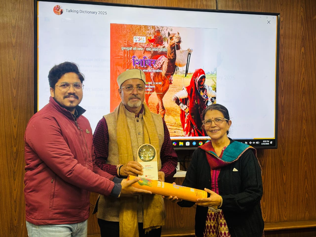 सरायपाली। बिलासपुर जिले के बेलपान (तखतपुर) क्षेत्र में निवासरत डांगचगहा “नट” समुदाय की भाषा के संरक्षण के लिए लोक कला एवं बोली विकास अकादमी, संस्कृति परिषद भोपाल, मध्यप्रदेश द्वारा टॉकिंग डिक्शनरी का निर्माण किया गया है, घुमंतुओं की भाषा एवं शब्द संकलन के लिए आशुतोष मालवीय, अतिथि व्याख्याता भूगोल, डॉ भीमराव अंबेडकर शासकीय महाविद्यालय बलौदा को उनके द्वारा किए गए नवाचारों के लिए प्रतिष्ठित आयोजन लोकरंग की 41वीं संस्करण में गणतंत्र दिवस की शुभ संध्या पर महामहिम राज्यपाल (म प्र) श्री मंगू भाई पटेल एवं मुख्यमंत्री (म प्र) डॉ मोहन यादव की उपस्थिति में सम्मानित किया गया।