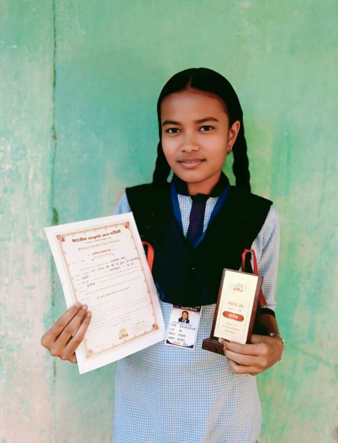 सरायपाली। अखिल विश्व गायत्री परिवार द्वारा आयोजित भारतीय संस्कृति ज्ञान परीक्षा में शासकीय उच्चतर माध्यमिक विद्यालय केदुवां में अध्ययनरत कक्षा दसवीं की छात्रा अनुपमा साहू पिता दुर्गाप्रसाद साहू (बिजातीपाली) ने महासमुंद जिले में तृतीय स्थान प्राप्त किया है। इस उपलब्धि के लिए अनुपमा को जिला स्तरीय कार्यक्रम में प्रमाण पत्र व मोमेंटो देकर सम्मानित किया गया। साथ ही उसके माता-पिता व शाला के प्राचार्य अरूण कुमार भोई को भी सम्मानित किया गया है। इसके लिए समस्त शाला परिवार ने हर्ष व्यक्त कर उनके अनुपमा के उज्जवल भविष्य की कामना की है।