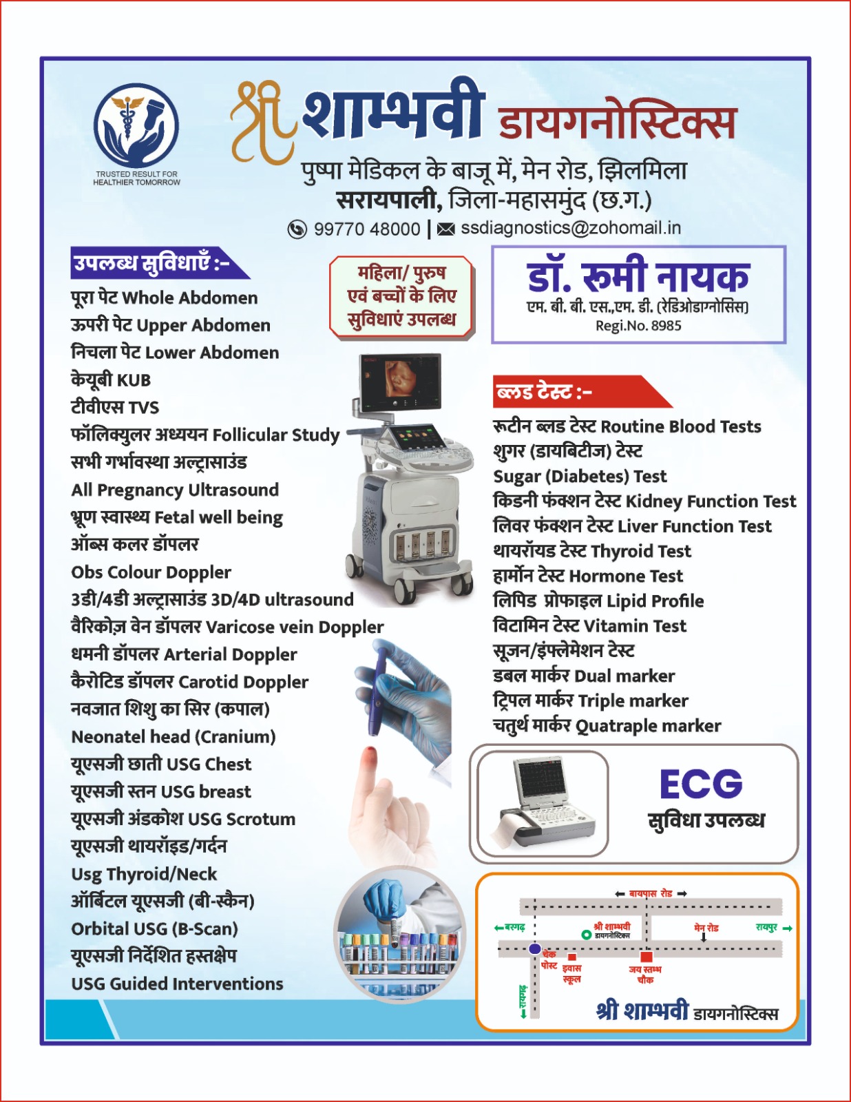 अब आपके शहर सरायपाली में शाम्भवी डायगनोस्टिक्स आपकी सेवा में