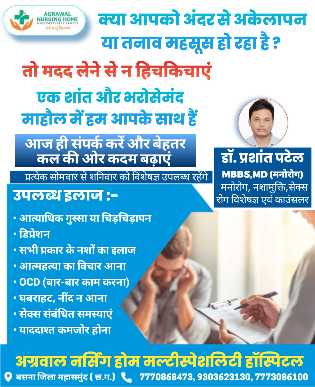 MBBS, MD (मनोरोग) मनोरोग, नशामुक्ति, सेक्स रोग विशेषज्ञ एवं काउंसलर