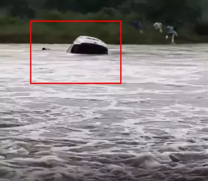 पानी के तेज बहाव में कार बेकाबू स्थानीय लोगों के मुताबिक, कार चालक ने चेतावनी और खतरे को नजरअंदाज कर पुल पर चढ़ी तेज धार को पार करने की कोशिश की। अचानक कार का संतुलन बिगड़ गया और वह सीधे नाले की तेज धारा में बहने लगी। कुछ ही सेकंड में कार पूरी तरह पानी के बहाव में फंस गई और तेज धार उसे नीचे की ओर ले जाने लगी। कार में तीन लोग सवार थे। जैसे ही उन्हें लगा कि कार पूरी तरह पानी में समा जाएगी, उन्होंने तत्काल पानी में कूदकर अपनी जान बचाने का फैसला किया। गनीमत रही कि तीनों तैरकर सुरक्षित किनारे तक पहुंचने में सफल हो गए। ग्रामीणों ने भी मदद का प्रयास किया और उन्हें बाहर आने में सहयोग दिया। मौके पर मौजूद लोग इस हादसे को देखकर सन्न रह गए।